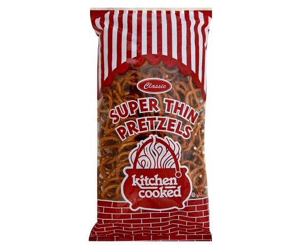 Description Enjoy Kitchen Cooked Classic Super Thin Pretzels as a classic salty snack that's a must-have for any gathering. Whether you're watching the game, having a backyard barbecue or eating a bagged lunch at the office, these pretzels are a satisfying snack for any occasion.Contains: WheatStore: In a Dry location at Room temperatureForm: StickState of Readiness: Ready to eatPackage type: Individual item multi-servingExterior container material: PlasticRETIRED snack name 1: Potato chipsNet weight: 15.0 ouncesPackage Quantity: 1Super-thin pretzels are easy to eat by the handful15 oz bag is great for sharing Classic pretzel taste Estimated shipping dimensions: 7.75INCH X 14.75INCH X 3.5INCH DPCI : 071-06-1763 UPC : 079088800154 TCIN : 47075815 Estimated shippimg weight: 0.938POUND