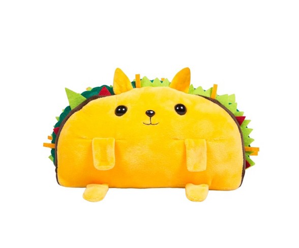 Description Stop drooling over the Exploding Kittens card game and grab this Tacocat plush instead! Tacocat is soft plush and felt, ready for you to cuddle, drool on, maybe even nibble a bit. Tacocat plush measures 5" high (not including ears) x 9" long. The perfect gift for a friend who loves tacos, cats, and not exploding!Dimensions (Overall): 9.3 inches (L) x 2.5 inches (W) x 6.4 inches (H)Suggested Age: 12 Years and UpCPSC Choking Hazard Warnings: Choking_hazard_small_partsStop drooling over the Exploding Kittens card game and grab this Tacocat plush instead!Tacocat is soft plush and felt, ready for you to cuddle, drool on, maybe even nibble a bit.Tacocat plush measures 5" high (not including ears) x 9" long.The perfect gift for a friend who loves tacos, cats, and not exploding! Estimated shipping dimensions: 2.5INCH X 6.4INCH X 9.3INCH Estimated shippimg weight: 0.25POUND