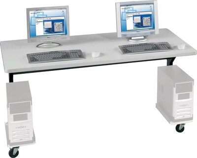 Description Balt Brawny Mobile Computer Desk - Rugged Construction This Balt Brawny mobile computer desk features rugged construction and exceptional stability. The beautiful laminate gray top has edge banding for extra durability, and a lower support bar helps to keep the unit from moving side to side during use. This makes it a great choice for busy modern office environments. Heavy-duty Brawny tables feature 1" thick high-pressure laminate gray tops with edge banding and underside stretcher bar for extra stability Tables adjust in height from 25-1/2" to 33-1/2"H 25-1/2" - 33-1/2"H x 60"W x 30"D Built-in cable trough for managing electrical assemblies and cords Brawny 36" includes one grommet for cable management while and the Brawny 60" and Brawny 72 come with two grommets each Includes 3" casters and leveling glides Optional CPU holder is sold separately Ready to assemble Heavy-duty rectangular computer table features height adjustable base with integrated cable management 1" laminate top in gray finish with black powder coated steel base Use individually or combine for a classroom training environment Height-adjustable from 25-1/2" to 33-1/2"H and features underside stretcher bar for extra stability Optional CPU holder, item #739528, is sold separately· GREENGUARD GOLD Certified 1-year manufacturer's limited warranty Ideal for Multiple-Worker SpacesWith 60 inches of desk surface, this Balt Brawny mobile computer desk gives you room for multiple workers at a single desk or work surface for your employees to work on large, space-intensive projects. Two computers monitors, keyboards, and mice fit comfortably on this work station's surface. Easily Optimize Your Office SpaceWhen your company expands, you can easily add more workstations to your current setup and rearrange the space using this desk's 3-inch rolling casters. Unlike traditional computer desks, this desk can quickly be rearrange to optimize productivity without risking injuries from heavy lifting. Sturdy ConstructionMultiple workers at the same station require more equipment, and this Balt Brawny computer desk holds up to the added weight. Durable 1. 25-inch-thick surface panels are supported by an underside stretcher bar, giving this computer desk the stability and strength to keep your employees and your valuable equipment safe. Specifications Furnishing Color : Gray Furnishing Material : Laminate True Color : Gray Base Type : Mobile Assembly Information : Assembly required # of Drawers : 0 Brand : MooreCo Customizable : No Weight : 108.00 lbs. per Each