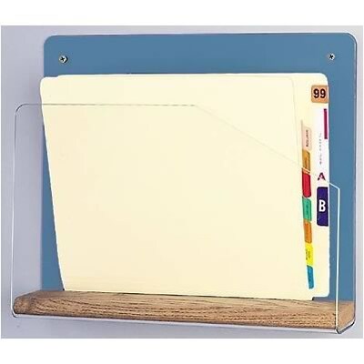 Description Open-sided holder accommodates nearly any size charts or X-rays Combines a sturdy Steel Blue back panel with a thick, 1/8" Lucite front panel and 3/4" solid oak bar along the bottom Predrilled holes for wall mounting Size: 14-1/2"W x 12"H x 2-1/4"D ADA compliant for use in passageways Specifications Color Family : Blue Clipboard Type : Form Holders True Color : Blue Height in Inches : 12" Depth in Inches : 2-1/4" Width in Inches : 14-1/2" Clipboard Material : Lucite Height (in.) : 12" Width (in.) : 14-1/2" Depth (in.) : 2-1/4" Brand : Designer Sign Customizable : No Weight : 3.00 lbs. per Each