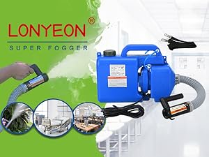 The LONYEON 4.5L Electric ULV Fogger features a robust 1.4KW motor delivering adjustable fog output (1-15gph) with a wide spray range up to 34 feet horizontally. Built from durable, corrosion-resistant materials, it ensures leak-free operation and versatile use across indoor and outdoor environments, making it an essential tool for efficient, professional-grade misting.
