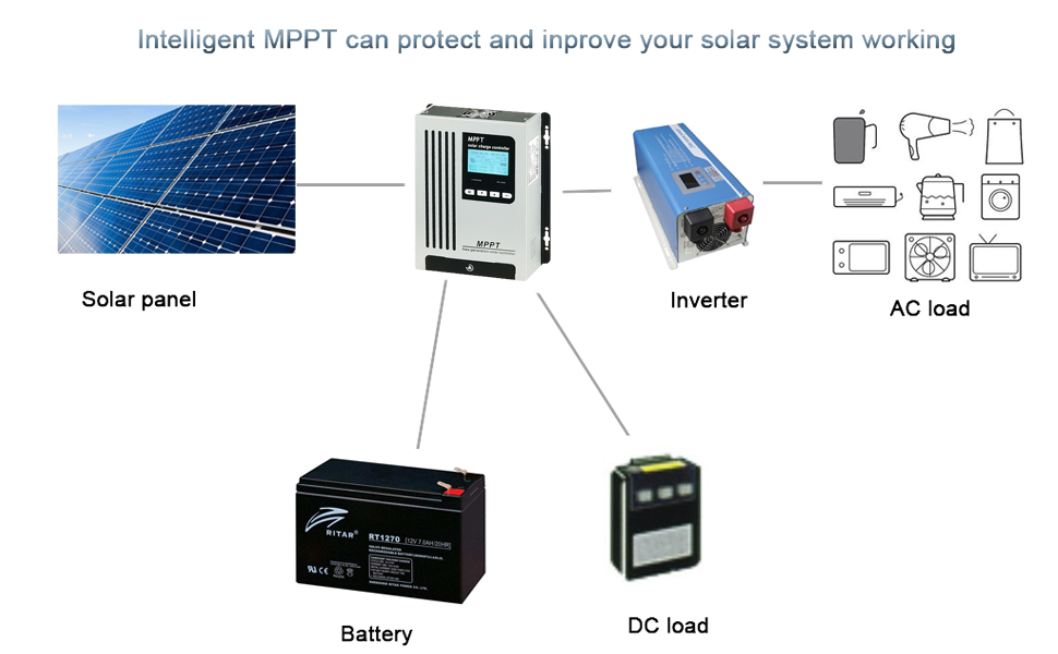 - The charging model is MPPT, it can keep the maximum power charge, the conversion efficient rate up to 98.1%, power consumption lower than 0.7W