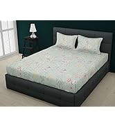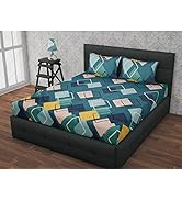 The RRC Glace Cotton Elastic Fitted King Size Bedsheet set includes a 72x78 inch sheet with elastic all around to securely fit mattresses up to 8 inches thick, plus two matching pillow covers. Made from breathable, soft 144 thread count RRC Glace Cotton, it combines comfort with a modern heart pattern design in green. Machine washable and easy to maintain, this set ensures a neat, slip-free bed every night.