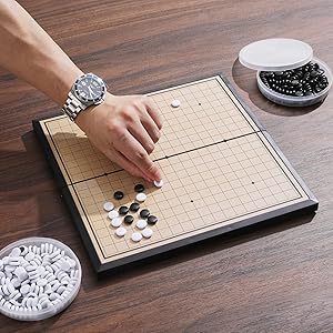 Mose Cafolo Magnetic Travel Go Game Set with Single Convex Magnetic Plastic Stones and Large 11.2 x 11.2 Inches Go Board,