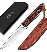 The Benkey Fixed Blade Hunting Knife features a 4.72-inch D2 steel blade with 61 HRC hardness, offering exceptional sharpness and corrosion resistance. Its ergonomic full tang natural wood handle provides a comfortable, non-slip grip for both men and women. Weighing just 6.74 oz and measuring 9.25 inches overall, this durable survival knife comes with a premium leather sheath designed for secure belt carry, making it an essential tool for camping, hunting, and outdoor survival.