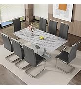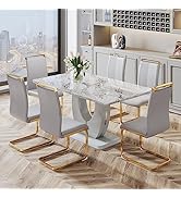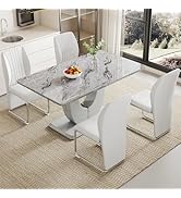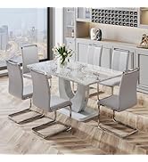 The JUFU Dining Table Set for 6 combines modern design with practical durability, featuring a spacious faux marble tabletop and light gray PU leather chairs. Weighing 120 pounds, this rectangle set offers stable support with a thick base and is designed for quick assembly in about 30 minutes. Ideal for family meals or entertaining, it balances elegance with easy maintenance and responsive customer service.