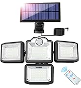 The JESLED Solar Light Outdoor features a powerful 2400mAh battery paired with 333 high-brightness LEDs across four independently adjustable heads offering 270° rotation. Controlled remotely with three intelligent motion sensor modes, it delivers customizable, energy-efficient lighting. Built to withstand harsh weather with an IP65 waterproof rating, this solar-powered security light guarantees hassle-free installation and zero electricity costs, perfect for modern outdoor security and ambiance.