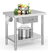 The YITAHOME NSF Stainless Steel Table is a 30"x24" heavy-duty workbench featuring 0.6mm thick corrosion-resistant stainless steel, three adjustable shelves for 50% increased storage, and 360-degree lockable wheels for smooth, secure mobility. Designed for versatile use across kitchens, garages, restaurants, and warehouses, it supports up to 420 lbs and includes all necessary tools for quick assembly.