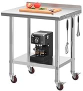 The YITAHOME NSF Stainless Steel Table is a polished, corrosion-resistant 30"x24" worktable featuring three adjustable shelves and heavy-duty 360° lockable wheels. Engineered for professional and home use, it supports up to 420 lbs and is NSF certified for versatile applications from kitchens to warehouses. Easy to assemble with included tools, it combines robust construction with smooth mobility to optimize any workspace.