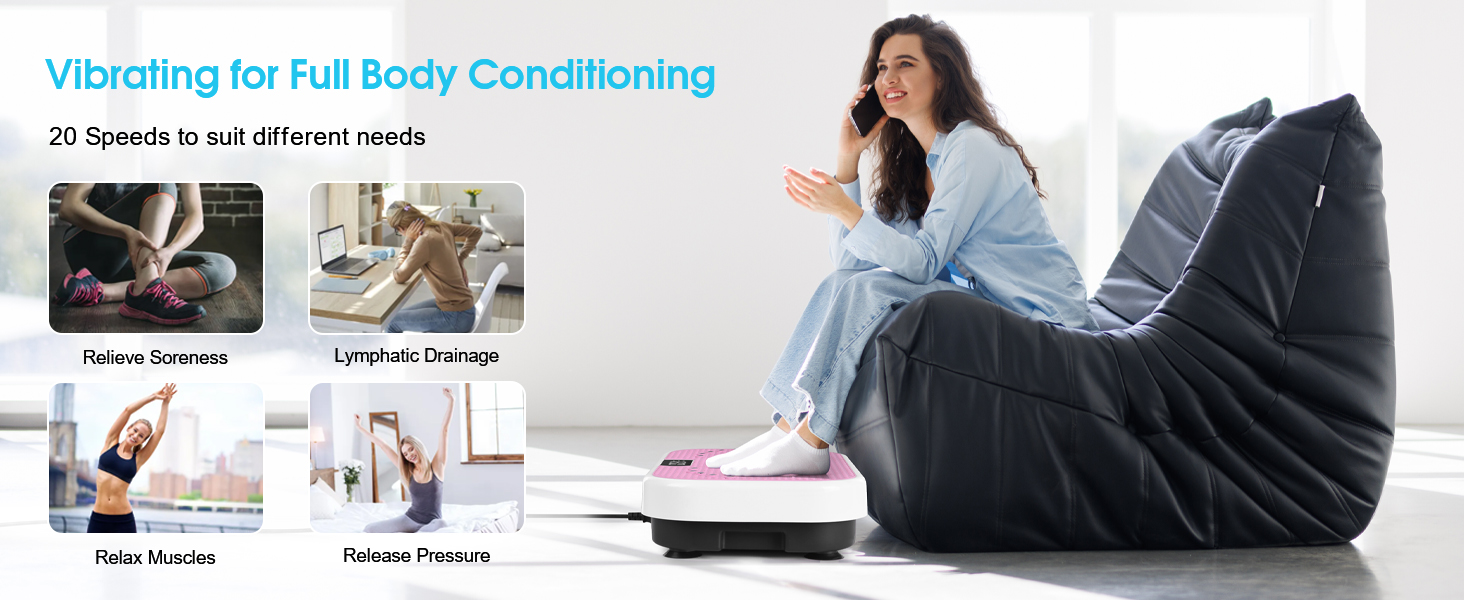 The SoftGym Vibration Plate Exercise Machine delivers a versatile full-body workout with 20 adjustable vibration speeds and resistance levels, supporting up to 450 lbs. Designed for lymphatic drainage and rapid fat burning, it features a compact, durable build with remote control operation and non-slip stability, making it perfect for efficient home or office fitness sessions.