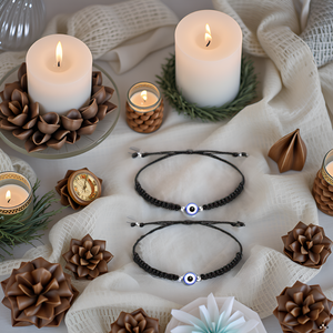 Evil Eye String Bracelets Handmade Black String Evil Eye Bracelet for Women Men Teen Girls Boys 2pcs