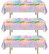 The OHOME 4 Pack Iridescence Plastic Tablecloths offer large, 54" x 108" waterproof coverage with a dazzling holographic finish. Made from durable PE plastic, these disposable tablecloths protect surfaces from spills and tears while adding a vibrant, rainbow shimmer perfect for birthdays, weddings, discos, and all your festive occasions. Lightweight and easy to clean or toss, they combine practicality with eye-catching style to make your party unforgettable.