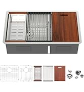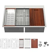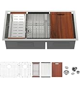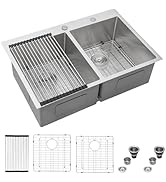 | Included Components | 2 x bottom grids, 2 x drain assembly and clips, 33 Double Bowl Kitchen Sink Drop In, Wood cutting board, rollup rack and colander |