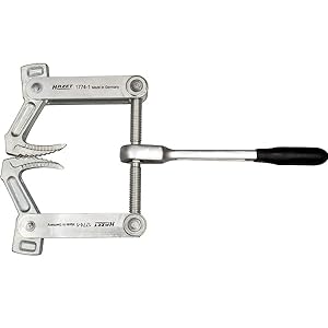 The HAZET 1774-1 Beam Pulling Tool is a premium German-made carpentry essential featuring a 17.3-inch max width and 4.5-inch stroke ratchet mechanism. Designed for heavy-duty wood clamping and pulling, it boasts galvanized hooks, a chrome-plated ratchet, and an ergonomic reversible ratchet handle for enhanced efficiency and durability on professional construction sites.